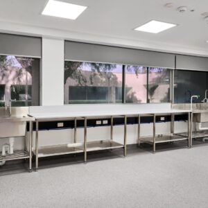 The laboratory and office fitout works comprised state of the art water system for laboratory services, stainless steel custom benches and shelving, electrical, mechanical and hydraulic services, joinery, tiling, ceilings & partitions, glazing, window treatments and painting throughout.