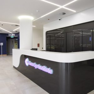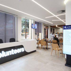 A multi staged medical refurbishment of administration, lobby and staircase areas, new corporate fitout and construction of a new café and alfresco area.